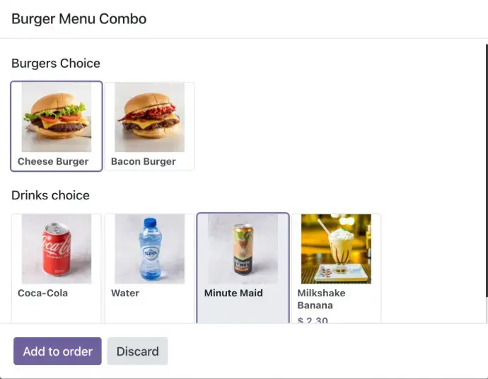 For example, with a Bread and Drink Combo, customers can choose bread with cheese or bacon filling. Next, the customer selects one of several drink options, which may include choices with additional fees.